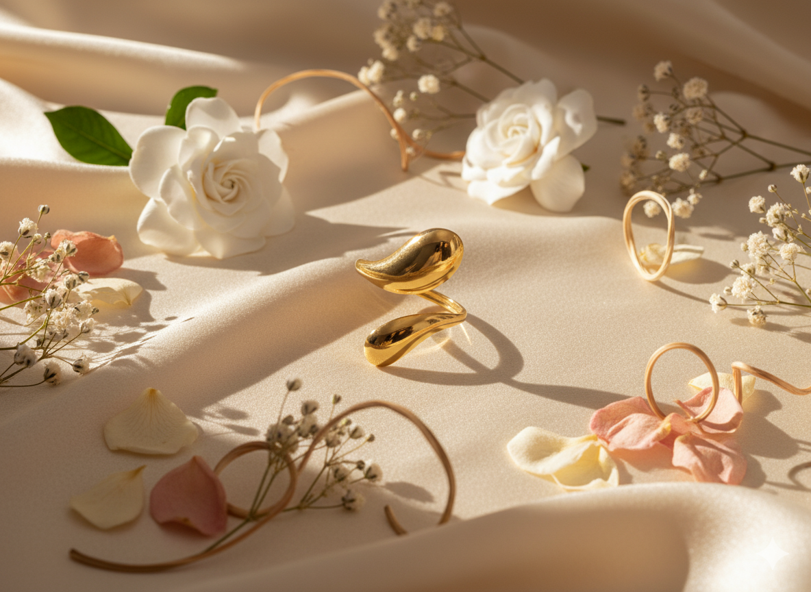 The Aurora Band Ring wraps your finger in fluid gold tones that catch the light like liquid sunshine. Designed for the modern muse β minimal, statement-making, and effortlessly timeless.
